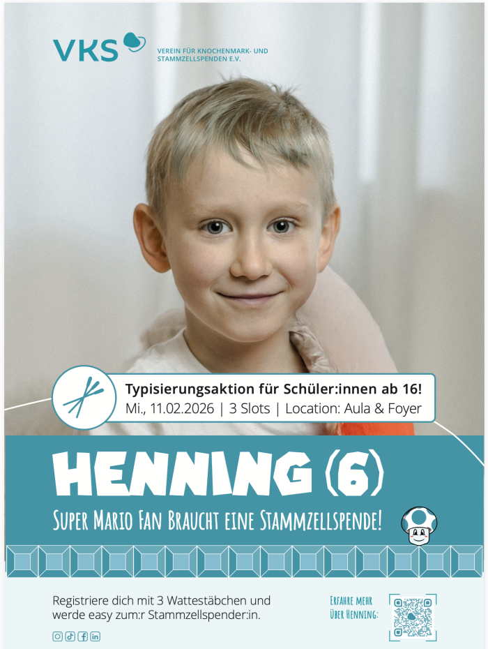 Wir wollen Henning helfen — Typisierung am 11. Februar 2026 am ABSZ! Der sechsjährige Henning aus Jessen ist schwer herzkrank und braucht dringend eine Stammzellspende. Neue Stammzellen können sein Immunsystem neu aufbauen und sein Herz vor weiteren Schäden schützen. Wer kann helfen? Gesunde Personen zwischen 16 und 45 Jahren Ein …